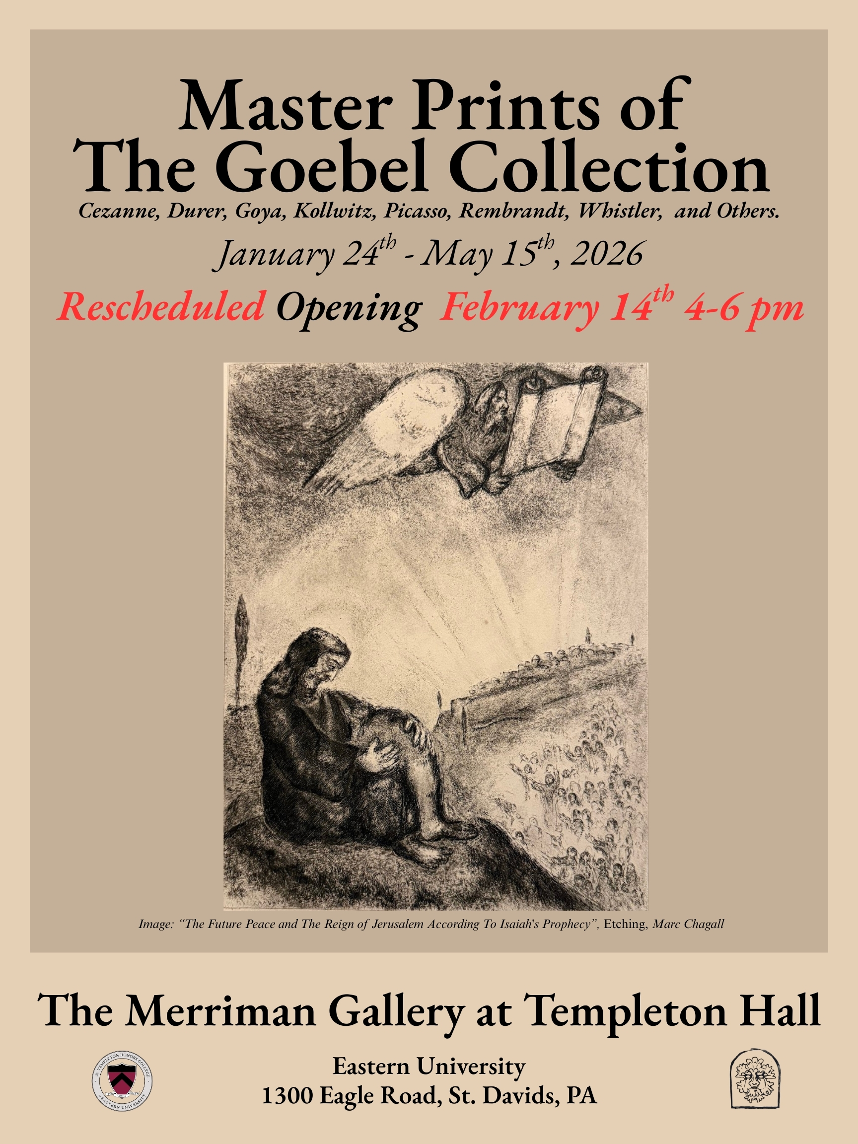 This show will feature the master prints of Cezanne, Durer, Goya, Kollwitz, Picasso, Rembrandt, Whistler, and others.