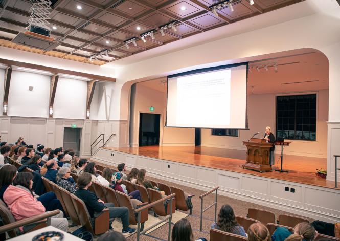 Then, on Thursday evening, Dr. Soskice gave a lecture in Clemens Hall of Templeton Hall to a large and engaged audience.