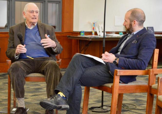 Peter A. Benoliel being interviewed by Templeton Dean, Dr. Brian Williams, for Honors Forum.