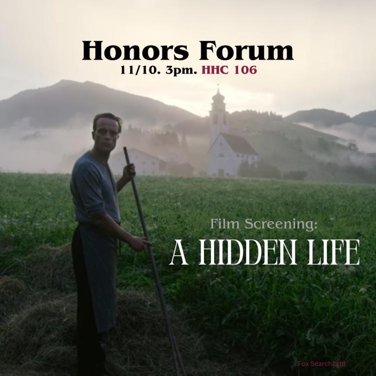 Honors Forum this Friday, Nov. 10th | HHC 106 at 3pm | Film screening of A Hidden Life